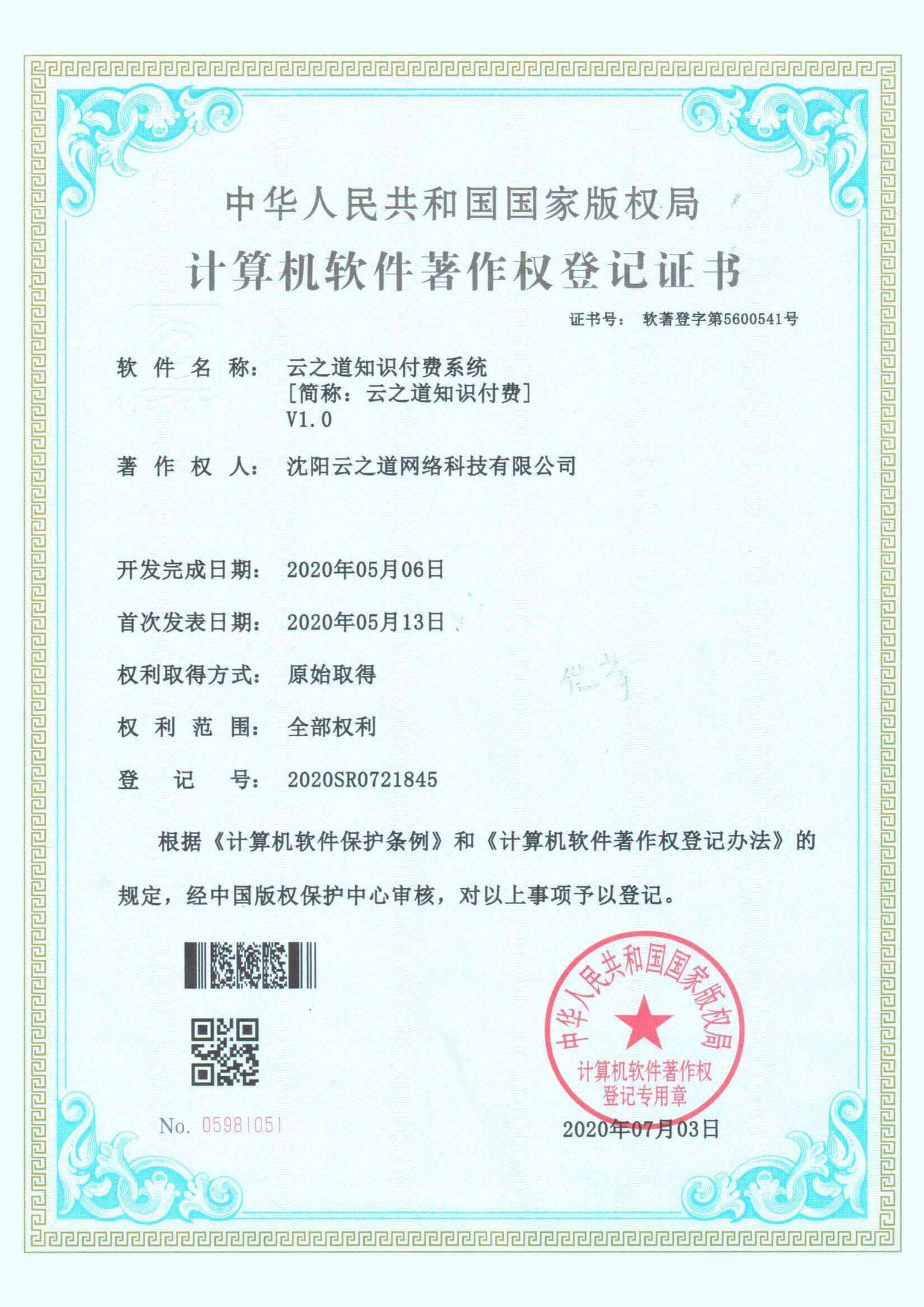 软件登记号:2020SR0721845