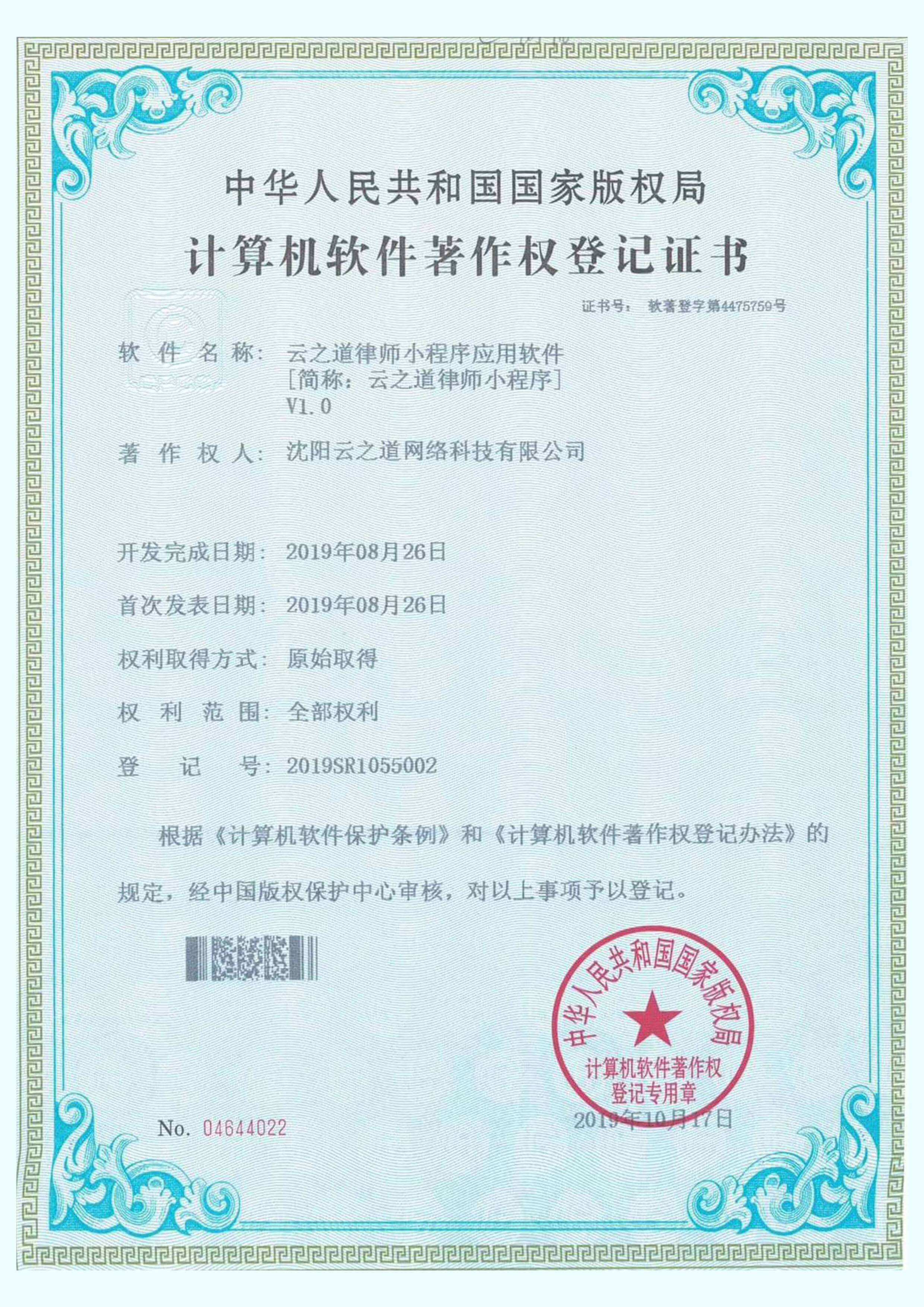 软件登记号:2019SR1055002
